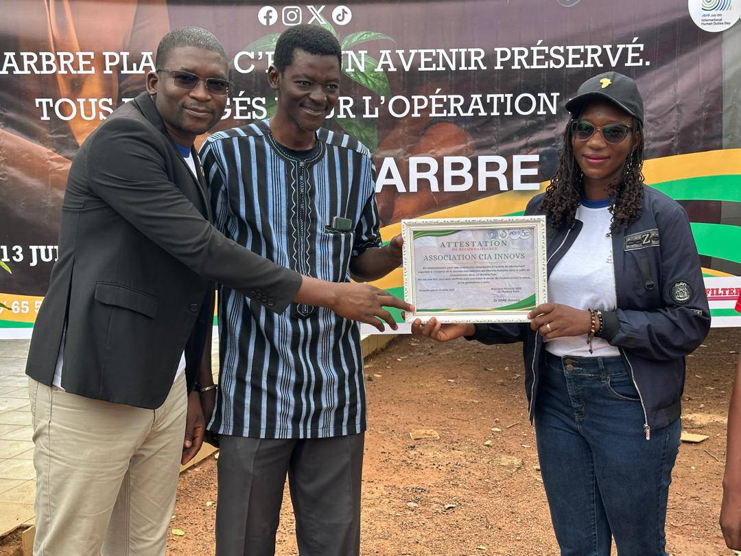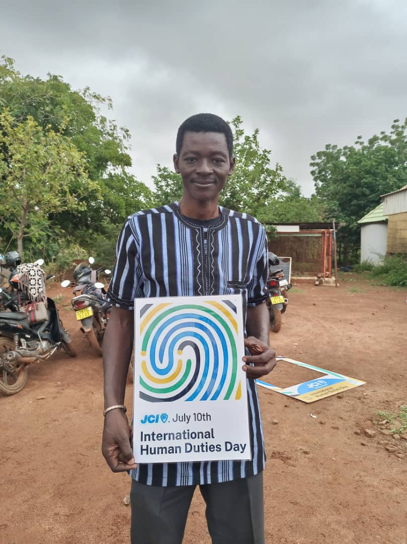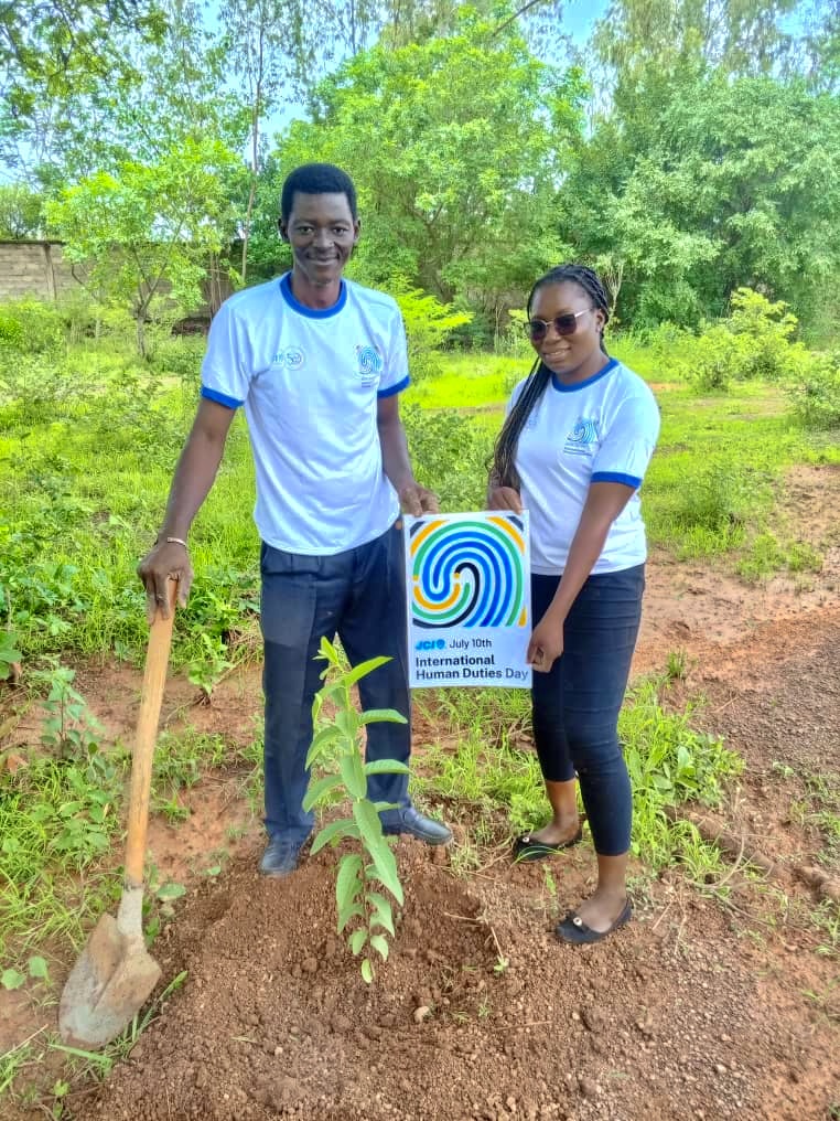 C’était aussi l’occasion de fêter l’action internationale lancée par JCI : (𝐼𝑛𝑡𝑒𝑟𝑛𝑎𝑡𝑖𝑜𝑛𝑎𝑙 𝐻𝑢𝑚𝑎𝑛 𝐷𝑢𝑡𝑖𝑒𝑠 𝐷𝑎𝑦 – 𝐽𝐶𝐼) Le 10 Juillet : Journée Internationale des Devoirs Humains – JCI). L’opération nationale couvre toutes les OLM de la JCI du Burkina Faso, chacun organise sa cérémonie de plantation d’arbres dans la période du 12 au 27 juillet 2025. JCI Ouaga Excellence et une autre OLM ont débuté le samedi 12 juillet. Les autres Organisaions Locales Membres (OLM) suivront.La nationale a réalisé l’activité de lancement officiel ce jour Dimanche 13 juillet. Je pense que nous avons planté 50 arbres pour ce lancement officiel, en présence d’autres Présidents d’OLM et le bureau exécutif national 2025 dont le président national 2025 le Dr Ousséni SORÉ."J’ai planté un manguier" a déclaré Rodolphe en image ci-dessous, en compagnie de Marie Christel BÉRÉ (Pdte 2025 JCI Ouaga Excellence).