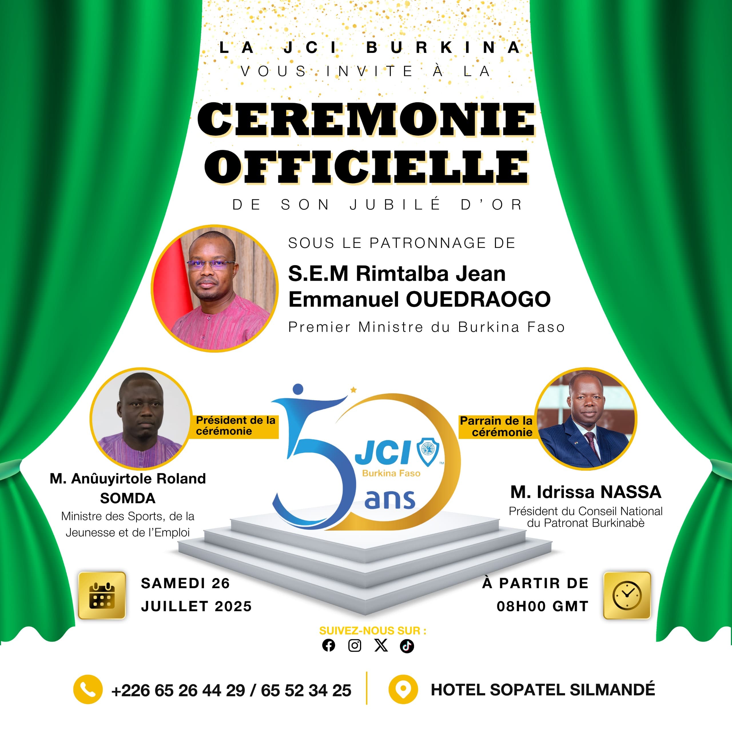 2/ Cérémonie Officielle du 50ème Anniversaire de la Jeune Chambre Internationale (JCI) du Burkina Faso : placée sous le thème « 50 ans d’engagement et d’impact – Héritage, résilience et perspectives pour un avenir meilleur ».
